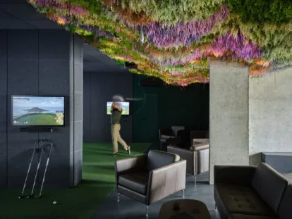Prostor je vybaven špičkovou technologií golfových simulátorů. Jedná se o simulaci hry, kdy je golfové hřiště promítáno pomocí projekce obrazu na projekční plátno. Současně je snímán let hráčem odpáleného míče nebo pohybu hole hráče při impaktu.