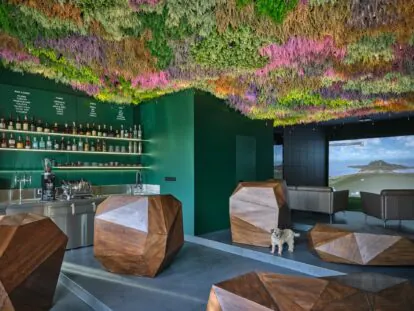 Důraz byl kladen na akustické a estetické řešení stropní umělecké instalace, která skrývá technologie jednotky i domovní trasy vzduchotechniky. Instalace z umělých rostlin a speciálního atypického bodového osvětlení je zavěšena na prostorové konstrukci evokující zvlněný terén.